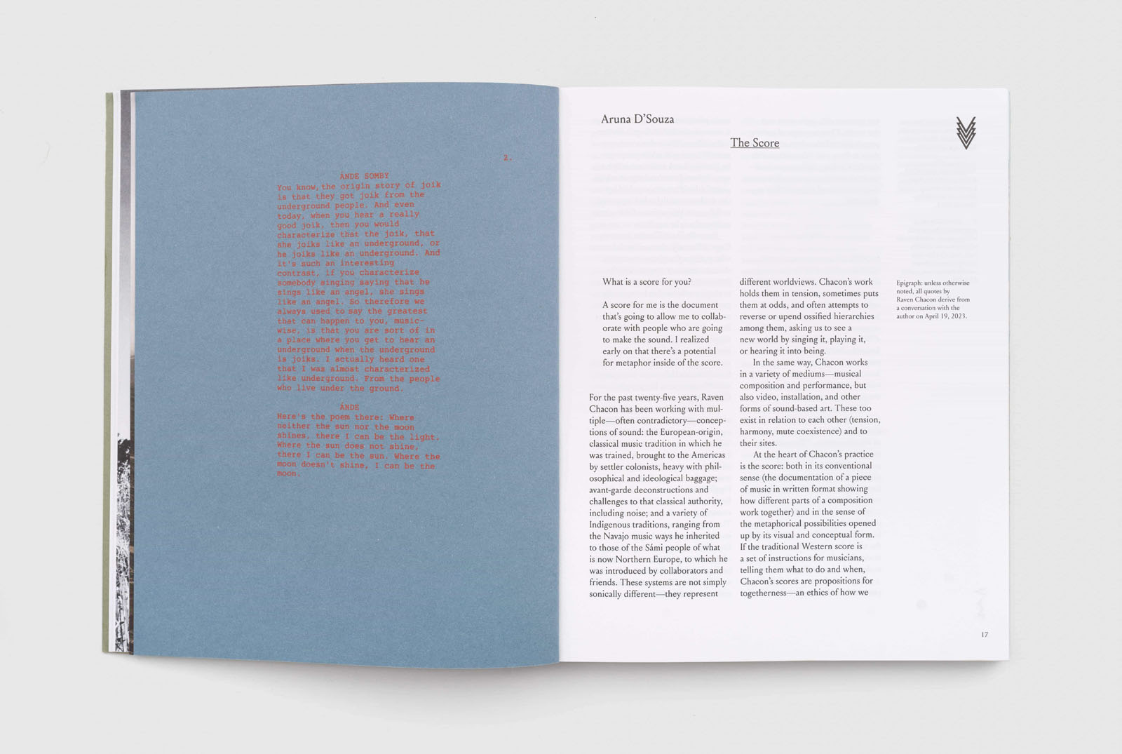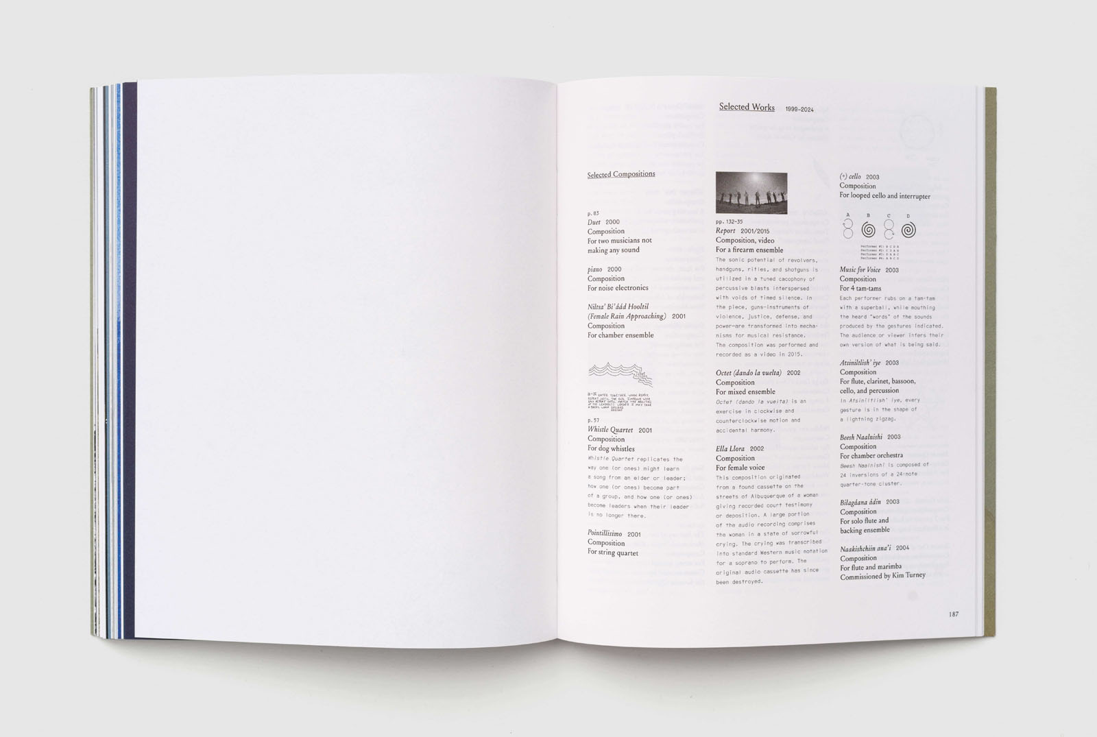 A career-spanning catalogue featuring excerpts from Raven Chacon’s scores, musical prompts, and drawings interspersed with full-color documentation and descriptive texts of installations, sculptures, and performances.